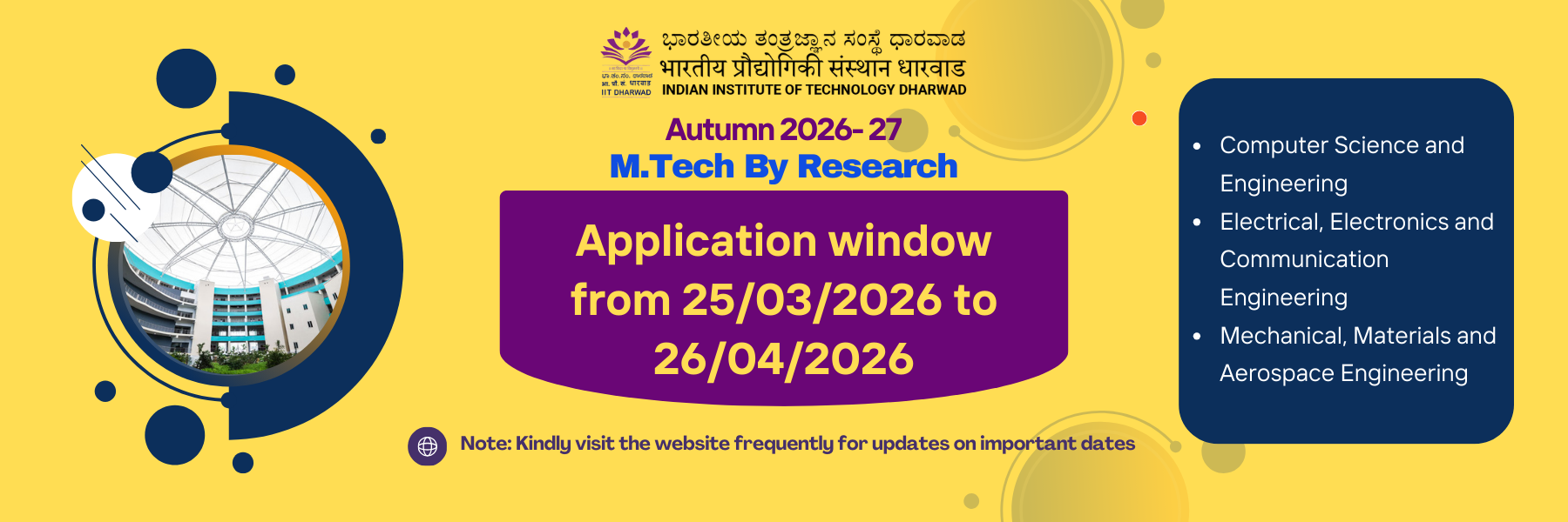| Deadline for M.Tech (R) online applications | 26/04/2026 |