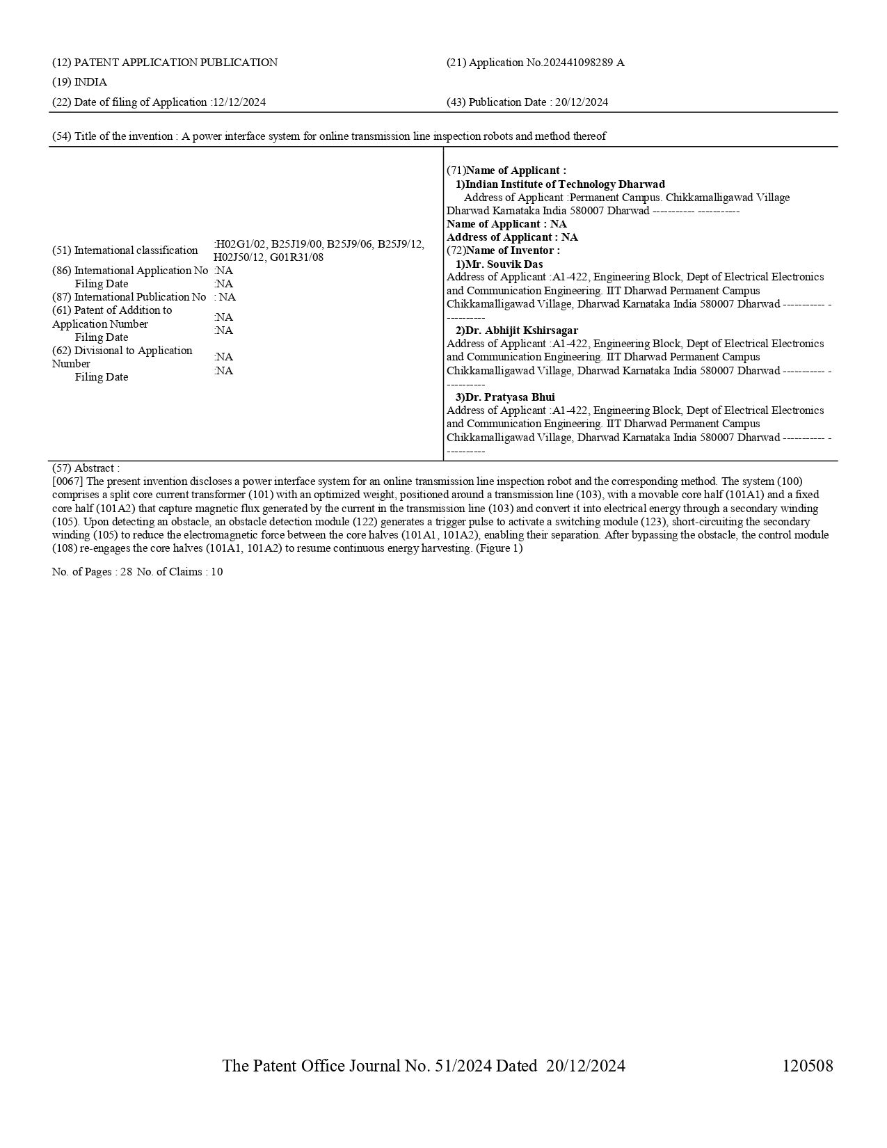 Innovation Spotlight at IIT Dharwad! - We’re thrilled to announce that an Indian Patent (Application No. 202441098289) has been published!