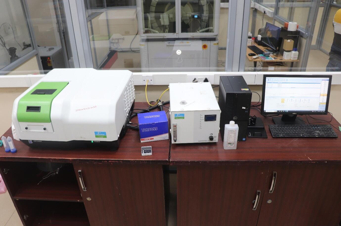 The equipment is useful in studying the fluorescent characteristics and to measure the quantum yields of the compounds, in solution, thin films and solid state. The instrument is coupled with integrating sphere which will enable measurement of absolute quantum yields of the fluorescent samples (solution and thin film/solid state).