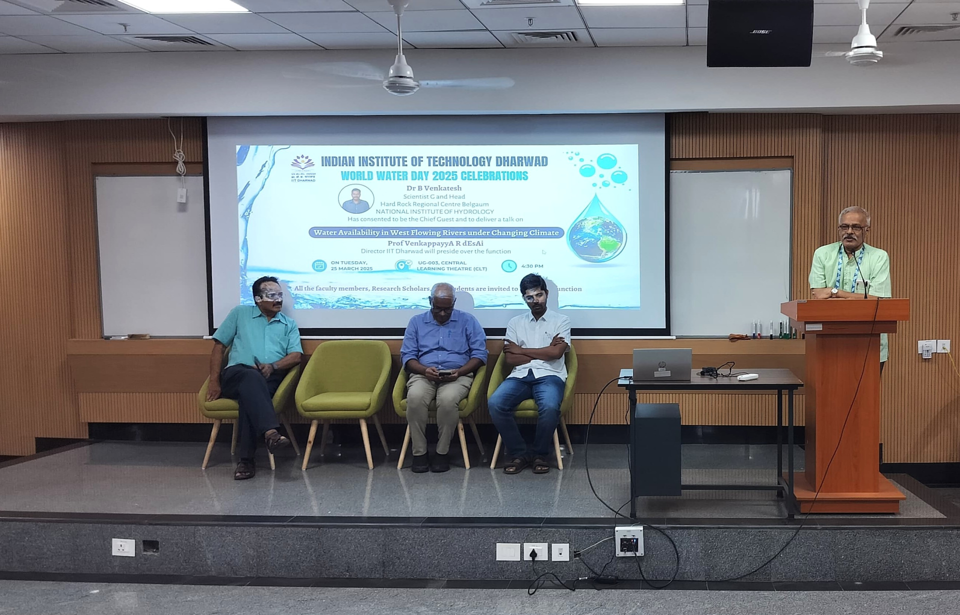 World Water Day 2025 was observed at IIT Dharwad on March 25, 2025. The Chief Guest for the occasion was Dr. B. Venkatesh, Scientist G and Head of the Hard Rock Regional Centre at the National Institute of Hydrology.