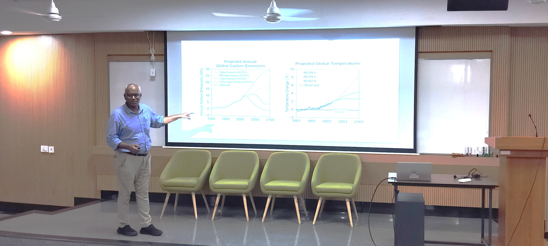 Dr. Venkatesh highlighted the theme for World Water Day 2025, “Glacier Preservation,” emphasizing the critical role glaciers play in sustaining freshwater supplies worldwide. He stressed the importance of conservation efforts in light of climate change. Later, he presented a comprehensive overview of various climate models and shared valuable insights on water availability in west-flowing rivers under different climate change scenarios. He discussed various Global Climate Models (GCMs) in the context of Shared Socioeconomic Pathways (SSPs). GCMs (General Circulation Models) are mathematical simulations of the Earth's climate system, while SSPs explore potential future global scenarios, focusing on societal, demographic, and economic factors that may influence greenhouse gas emissions and climate change. Dr. Venkatesh also presented case studies conducted by his research group. The program concluded with an engaging and interactive Q&A session.